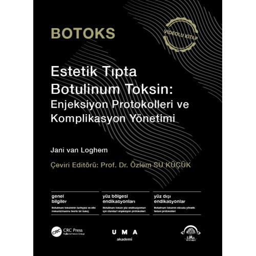 Editörlüğünü Prof. Dr. Özlem Su Küçük’ün üstlendiği Botoks Estetik Tıpta Botulinum Toksin: Enjeksiyon Protokolleri ve Komplikasyon Yönetimi Videolu Kitap, botulinum toksini uygulamalarına dair temel bilimsel bilgileri ve güncel klinik yaklaşımları bir araya getiren kapsamlı bir başvuru kaynağı olarak hazırlanmıştır. Alanında deneyimli akademisyen ve klinisyenlerin katkılarıyla oluşturulan bu eser; yüz anatomisi, botulinum toksininin etki mekanizması, farklı uygulama alanları, enjeksiyon teknikleri, hasta değerlendirmesi ve komplikasyon yönetimi gibi konuları bilimsel veriler ışığında ele almaktadır. Kitapta yer alan ayrıntılı açıklamaların yanı sıra uygulamaya yönelik görsel materyaller ve videolar da okuyucuların klinik pratiğe yönelik bilgi ve becerilerini pekiştirmeyi amaçlamaktadır.