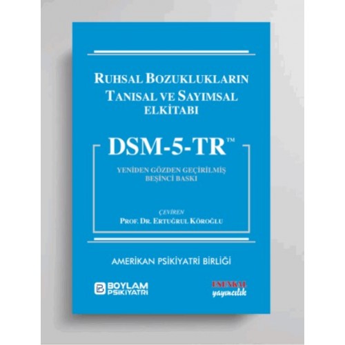 Amerikan Psikiyatri Birliği’nce yayımlanan, DSM-5-TR Ruhsal Bozuklukların Tanısal ve Sayımsal Elkitabı, yeniden gözden geçirilmiş beşinci baskı, klinisyenler ve bilimsel araştırmacılar için, psikiyatri bilim dalının en kapsamlı ve en güncel başvuru elkitabıdır. Bu kitap üç ana bölümden oluşmaktadır. Bunlardan birincisi tanısal sınıflandırma, ikincisi tanı ölçütleri takımları, üçüncüsü daha ayrıntılı bilgilerin yer aldığı tanımlayıcı düzyazılardır.
